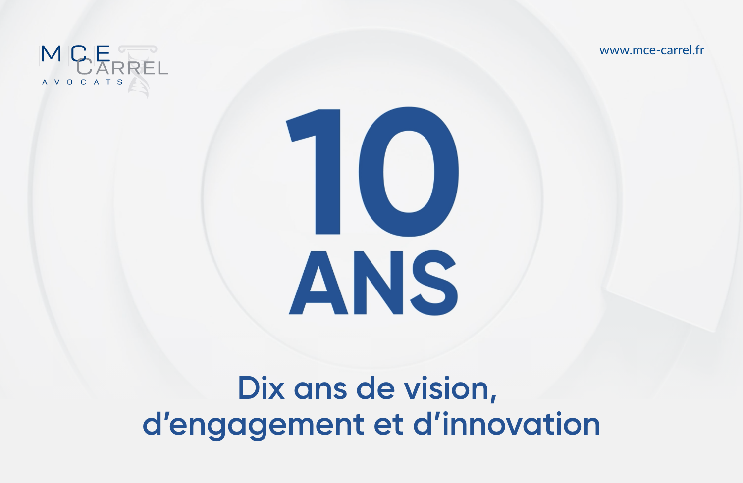Il y a 10 ans, MCE CARREL voyait le jour dans un bureau de 5m² avec deux clients, start-up à peine créée, et une ambition forte : placer l’innovation au cœur de notre ADN et proposer une approche du droit résolument tournée vers l’action opérationnelle et la stratégie.